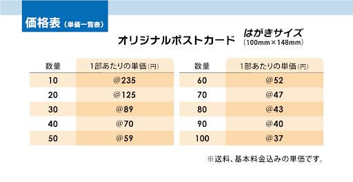 "ポストカード制作の基本料金500円に、ご希望の部数金額が加算されます。
