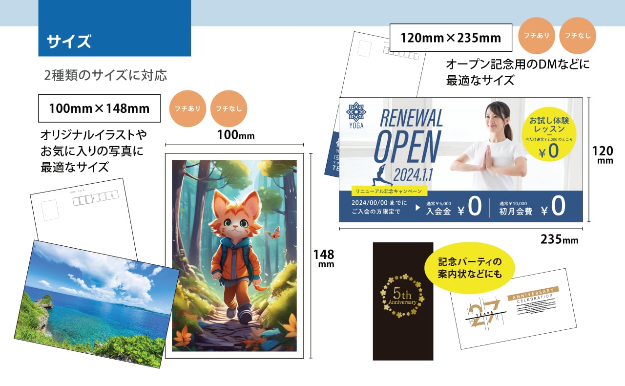 展示会や個展のDM、ノベルティ、新商品のご案内にもおすすめです。